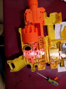 The hardware build — disassembly, trigger switch, Arduino wiring — is documented below: