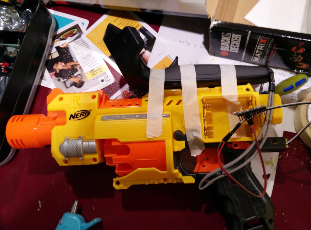 The hardware build — disassembly, trigger switch, Arduino wiring — is documented below: